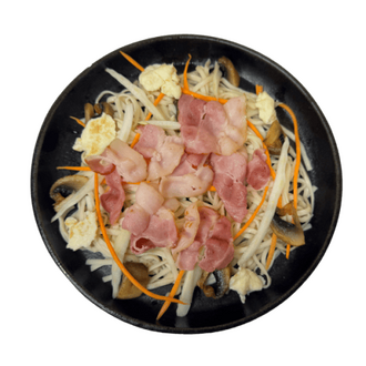 Состав соус на выбор: терияки/фирменный, китайская капуста, бекон, яйцо, морковь, грибы Вес300 г.