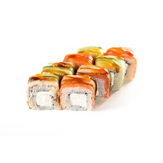 креветка темпура, сыр плавленый, авокадо, соус спайси, икра масаго - 8 шт. (Вес: 220г.)