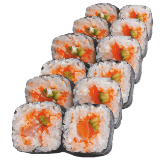 Состав лосось слабосоленый, огурец, креветка, дайкон маринованный, соус васаби, кунжут, икра масаго Вес275 г.