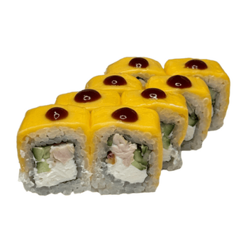 Состав кунжут, огурец, угорь, сыр Филадельфия, соус унаги Размер порции8 кусочков Вес240 г.