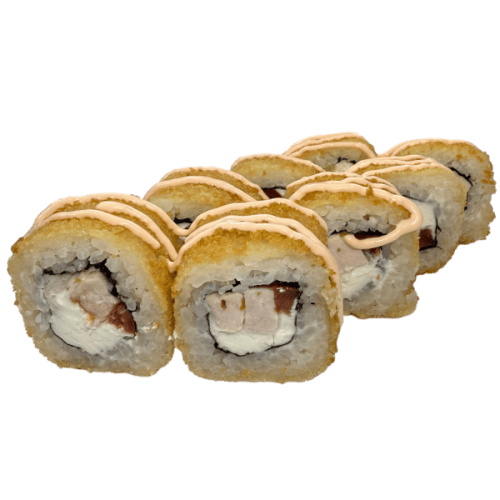 курица копченая, сыр филадельфия, помидор, соус спайси, сухари панко - 8 шт. (Вес: 240 г.)