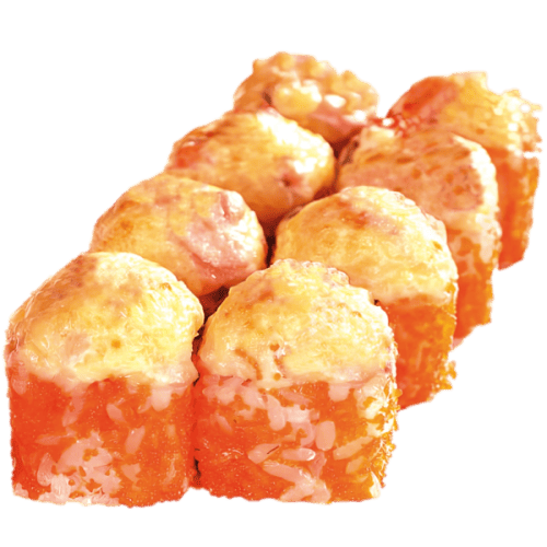 Состав сырный соус, сыр, икра масаго, японский омлет, сыр Филадельфия, крабовая палочка (сурими) Размер порции8 кусочков Вес285 г.