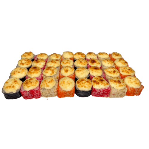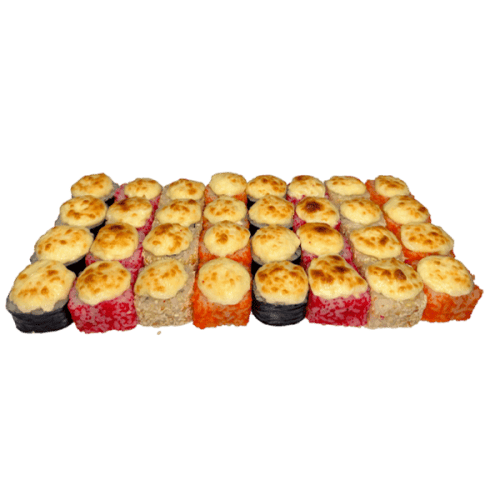 запеченный ролл с лососем, запеченный ролл с курицей, запеченный ролл с крабом, запеченный ролл с окунем (Вес: 1125 г.)