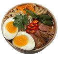 телятина, удон, бульон, яйцо куриное, грибы, морковь, фасоль стручковая, лук зеленый, перец чили, кинза (Вес: 450 г.)