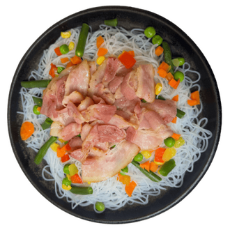 Состав куриное филе, зеленый горошек, спаржевая фасоль, лук, кукуруза, соус на выбор: терияки/фирменный, перец болгарский, морковь Вес300 г.
